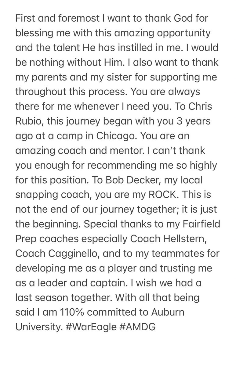 He has yet to be rated by the major recruiting services, but RubioLongSnapping.com has him rated as a 6-star long-snapper. Per the RubioLongSnapping.com site, being a 6-star prospect means the player has “perfect mentality, size, athleticism, spiral, speed and consistency. Freshman Year Starter at any College/University, All-Conference on Day 1 of College, Scholarship Pick.”