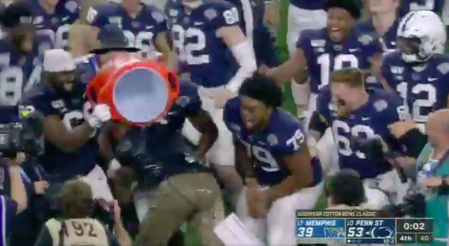 James Franklin tackles player who dumped Gatorade on him after Cotton Bowl win