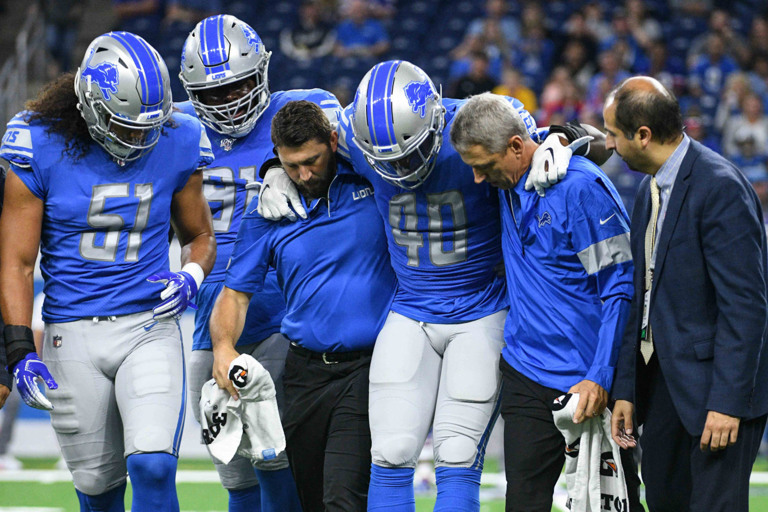 Former Arkansas OL Frank Ragnow carted off in Detroit Lions preseason game