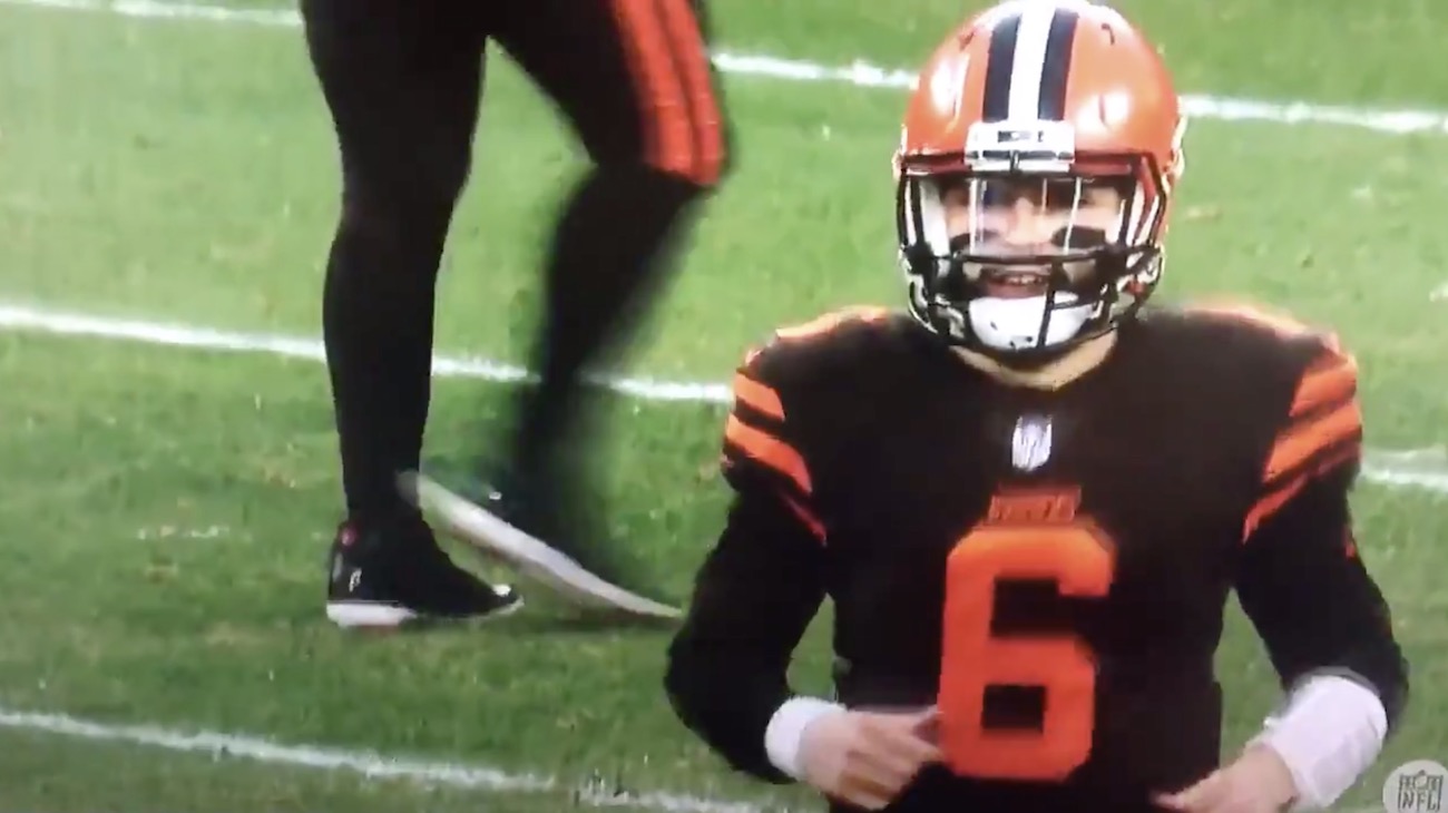 WATCH: Baker Mayfield stares down Hue Jackson after game-clinching play