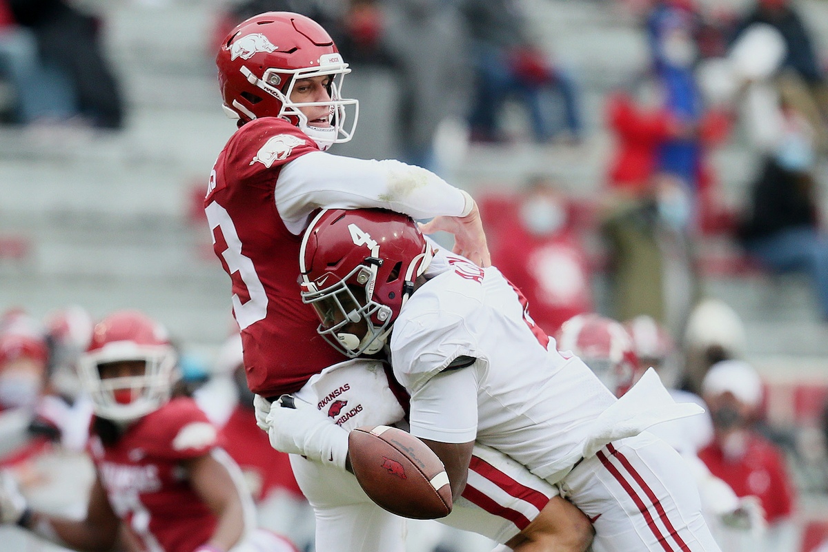 Arkansas player being called out for dirty play that could have injured Devonta Smith