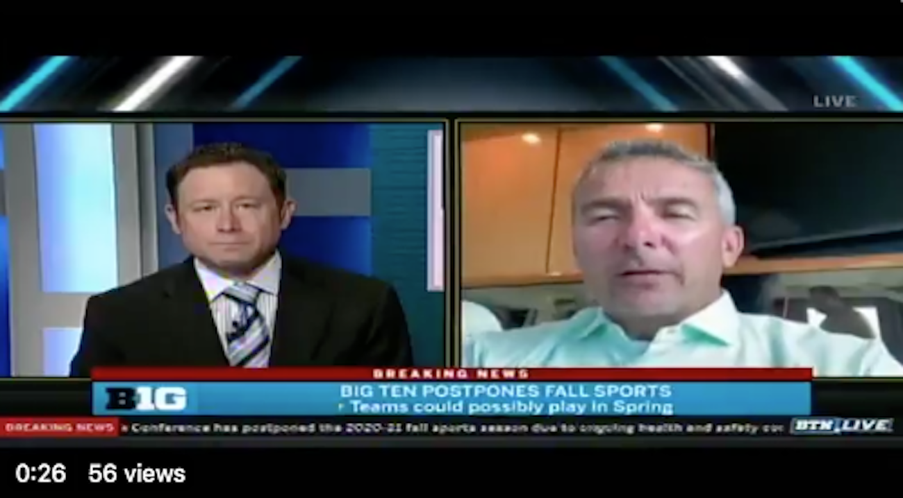 Urban Meyer freaks out after half-naked man walks in during live TV interview