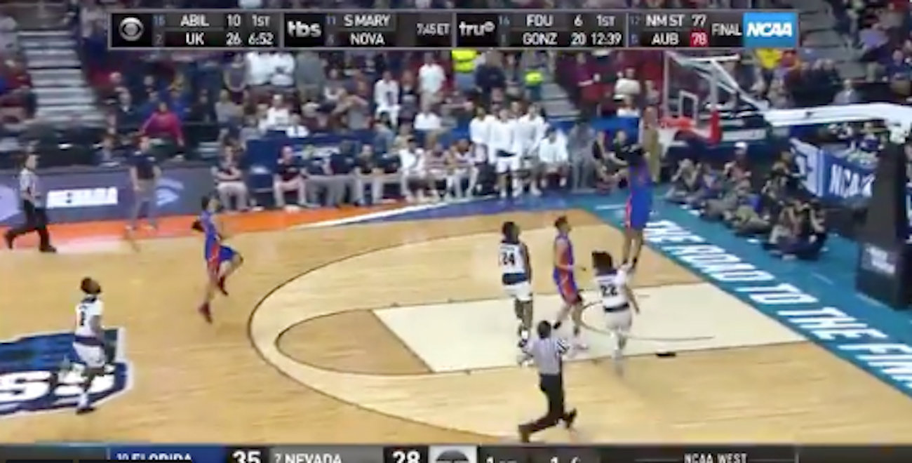 WATCH: Jalen Hudson slams home buzzer-beating dunk, as Gators lead Nevada at halftime