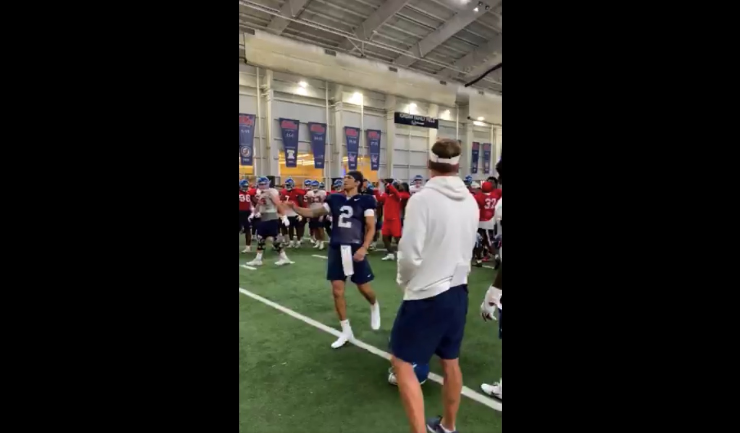 Lane Kiffin playfully trolls OL Nick Broeker after failed stint as wide receiver during practice