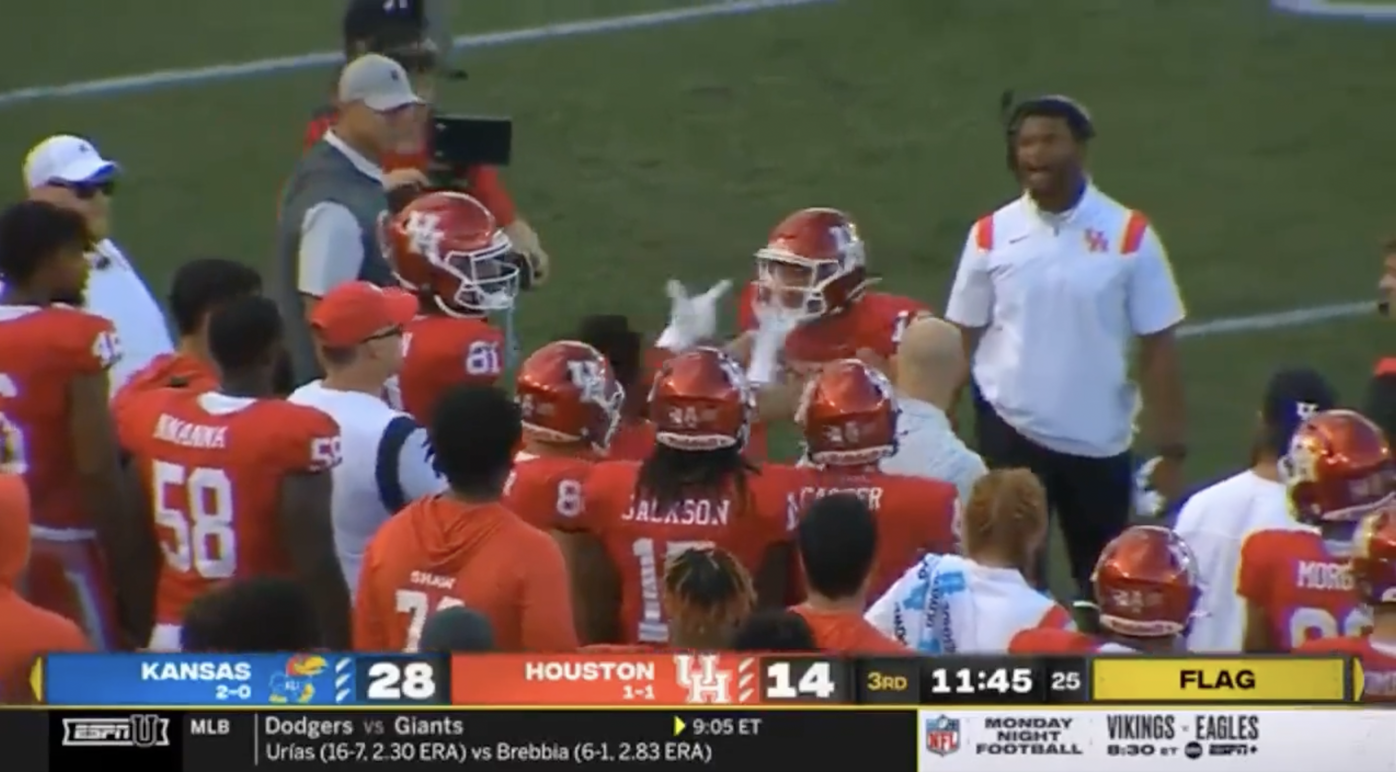 Houston players fight each other during heated sideline melee against Kansas