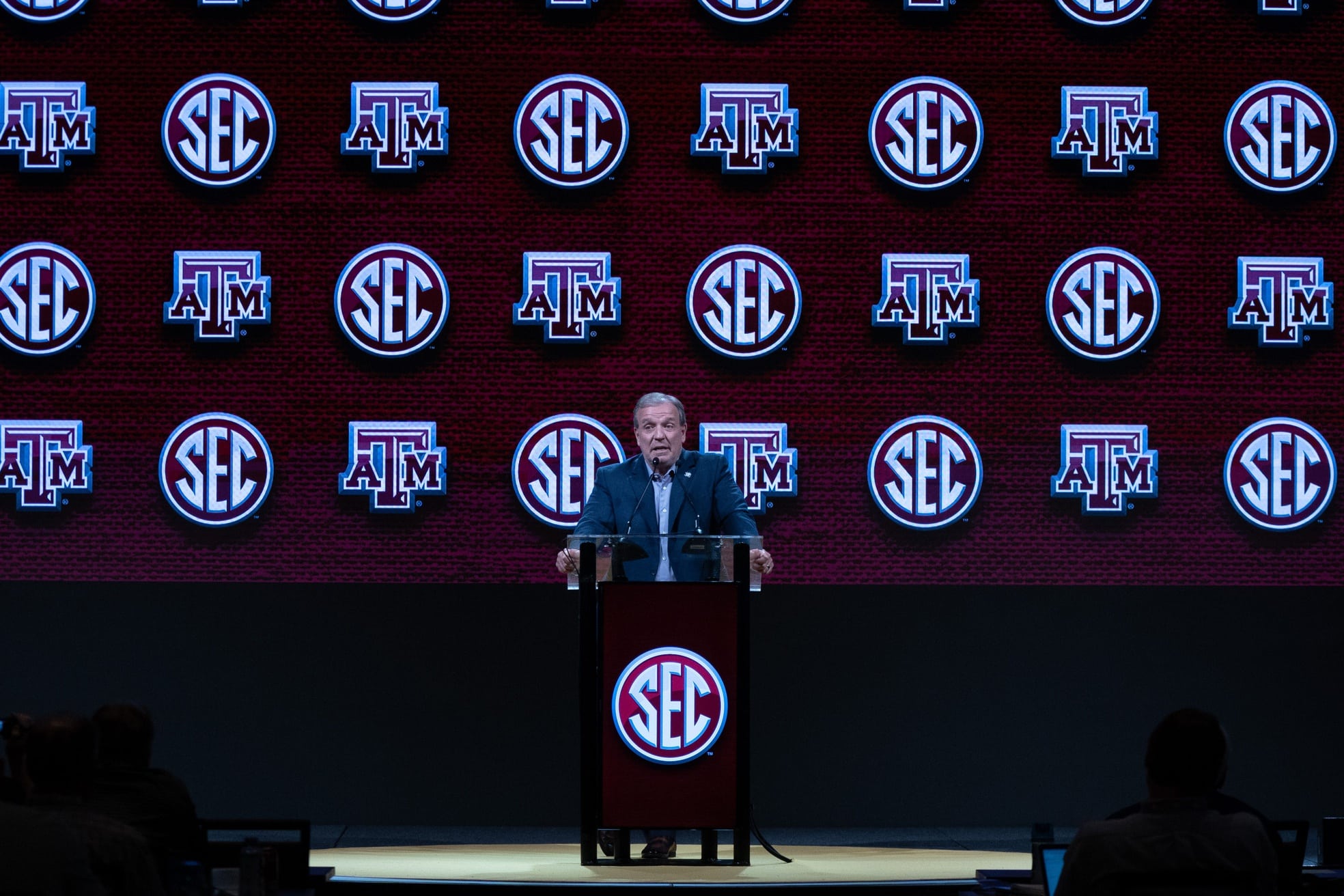 Jimbo Fisher reacts to questions about Bobby Petrino’s play-calling autonomy