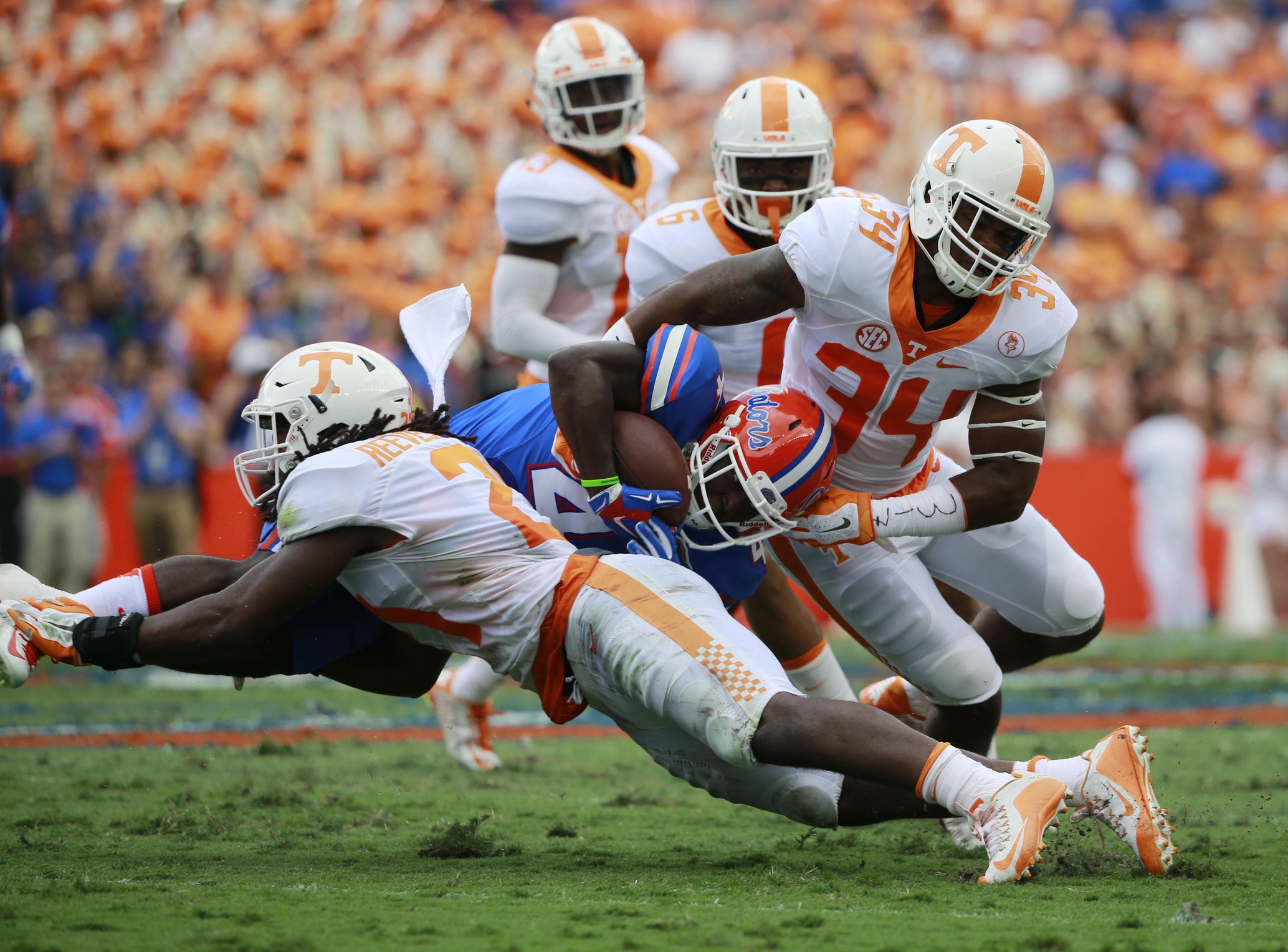 1. Tennessee LB Jalen Reeves-Maybin – At this point in the season, it could be argued that Reeves-Maybin has become the most important player on the Vols roster and the glue to the Tennessee defense. With talented running backs Nick Chubb and Sony Michel paying a visit to Knoxville on Saturday, the Vols will rely on Reeves-Maybin, who leads the team with 51 tackles, more than ever before. Sure tackling is a must if you plan to beat Georgia, and Reeves-Maybin is the best bet the Vols have in that department.