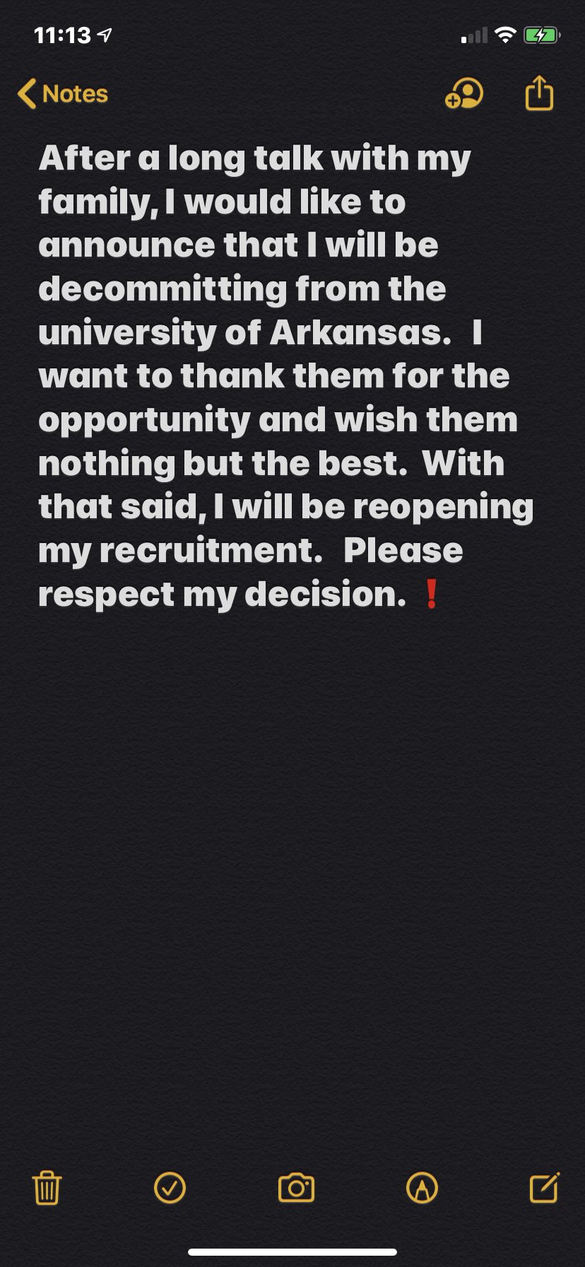 Marshall (Texas) WR Savion Williams announced on Sunday that he has decommitted from Arkansas. He shared the news via a note screenshot posted to his Twitter account: