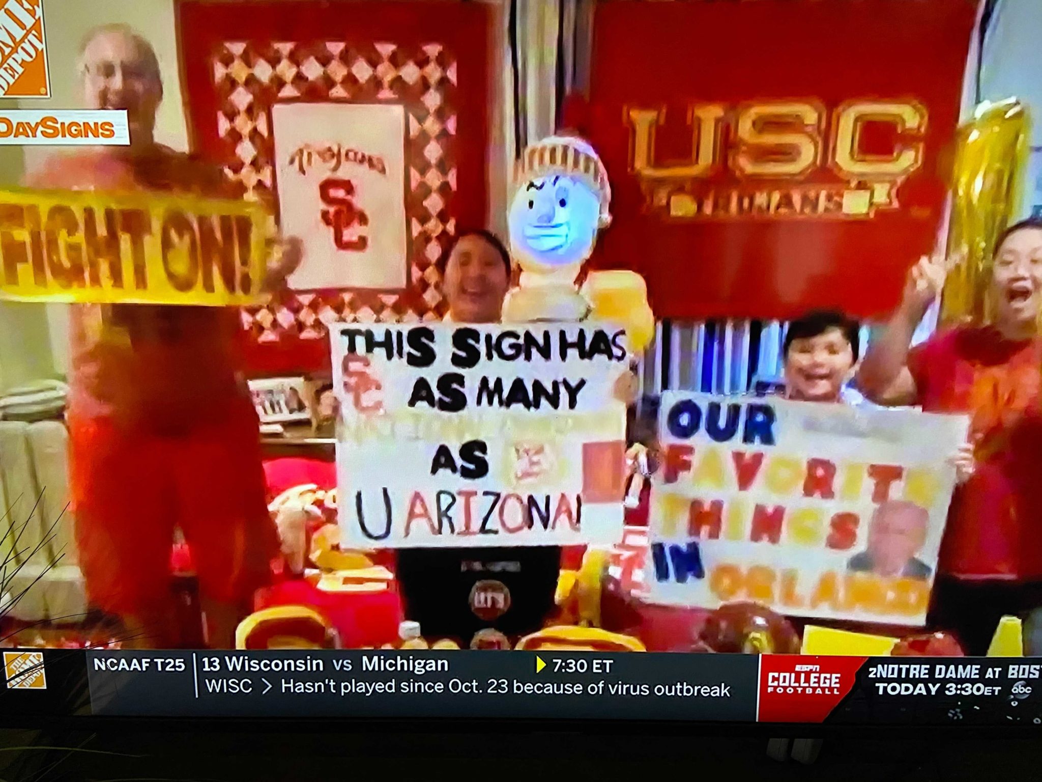 2020: The year that made us husband and wife AND kept the peace in our “house-divided” ❤️??♀️ @CollegeGameDay #gamedaysigns pic.twitter.com/wqfIskRs6n