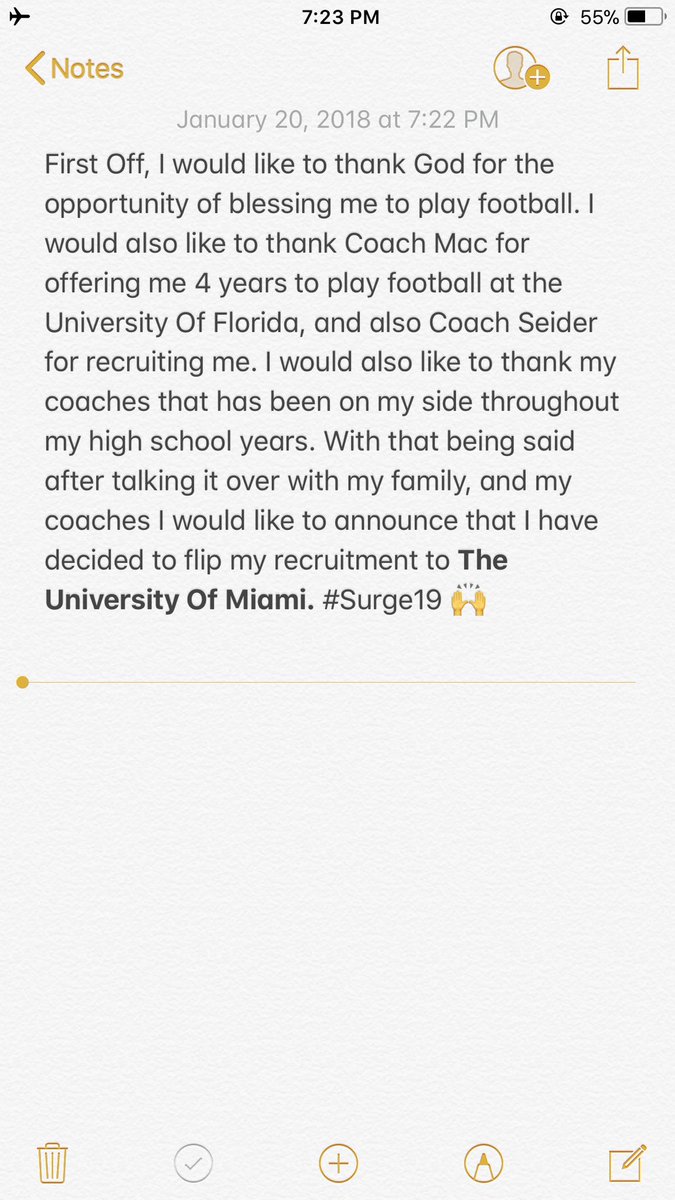 Williams announced on his Twitter page that it was just a business decision and flipped his commitment to the Miami Hurricanes. He had been committed to Florida since July 22, 2017, but Miami and Mark Richt have moved into the picture with the coaching change at Florida.