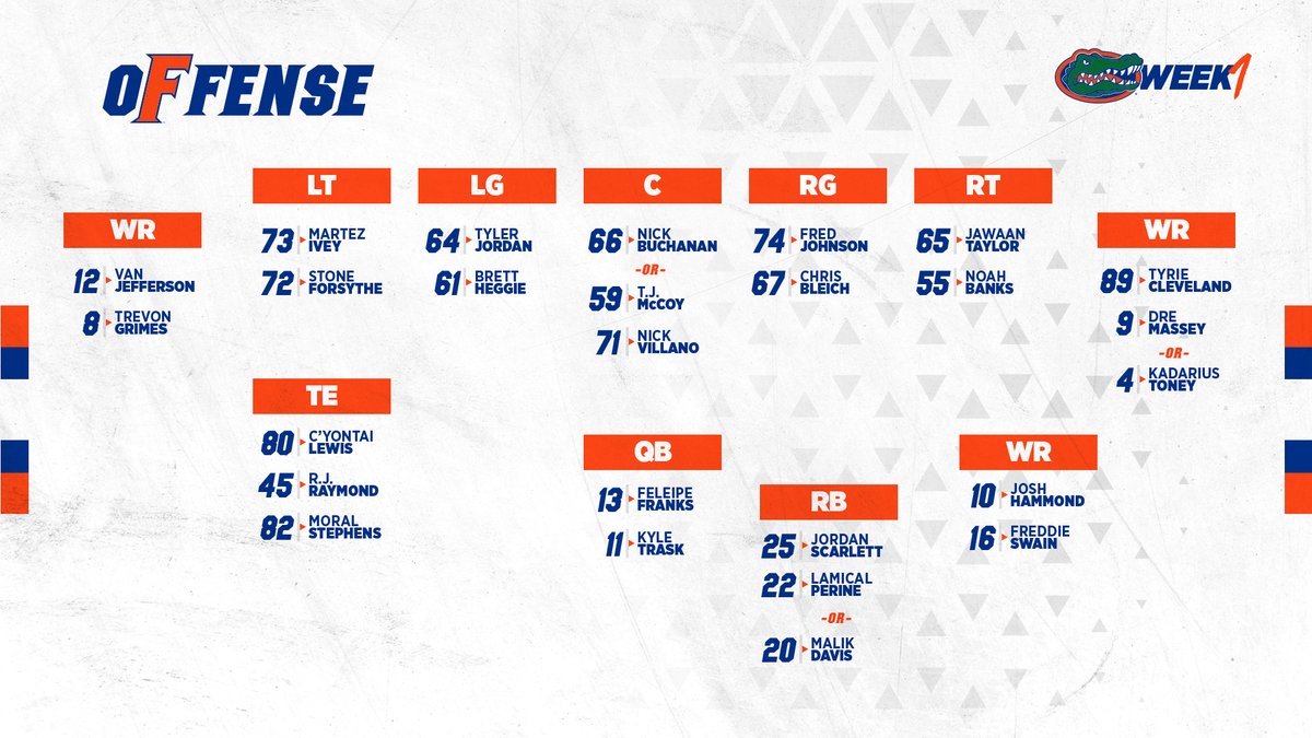 Here is a look at Florida’s entire starting lineup on offense heading into Week 1:
