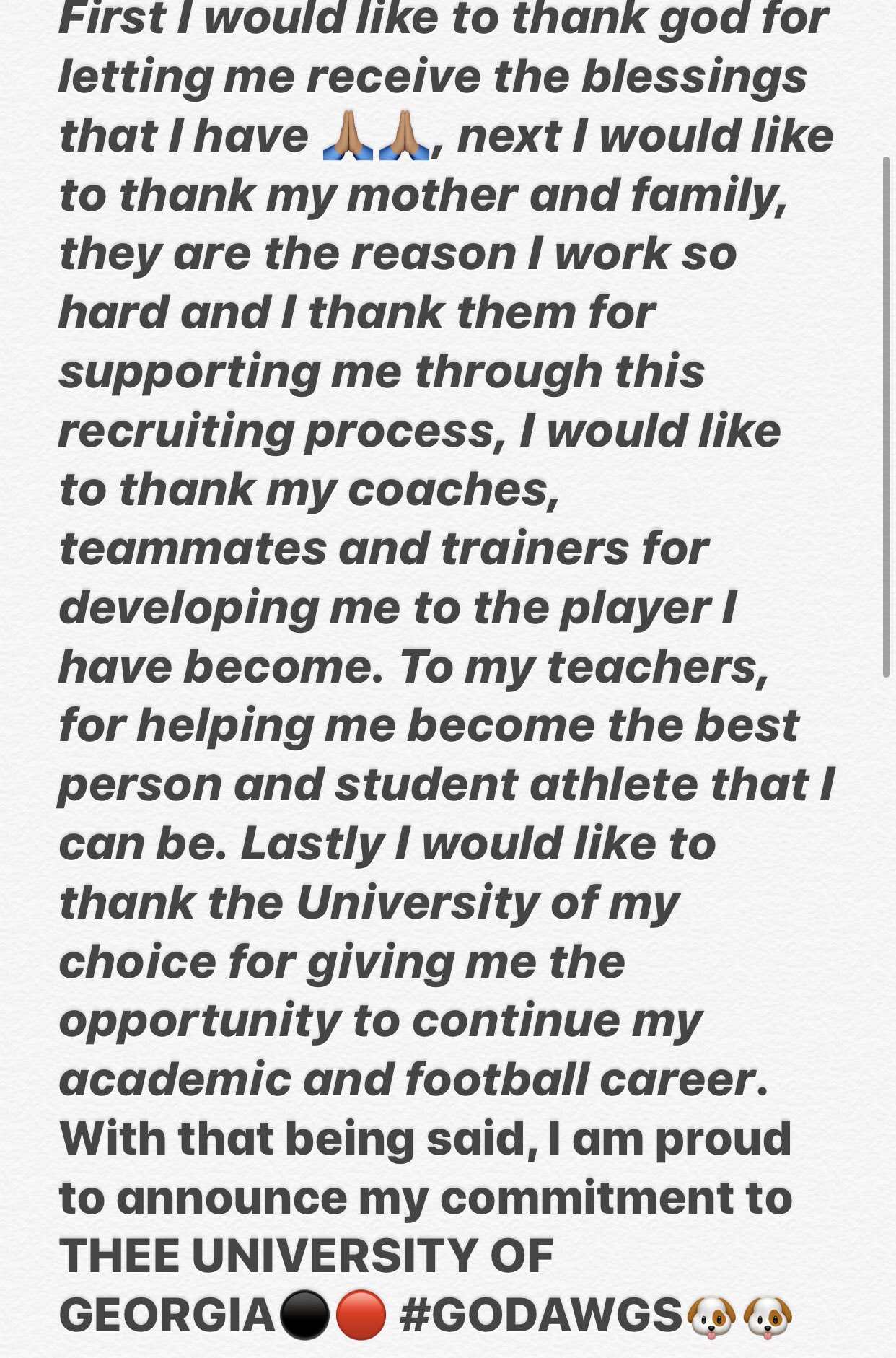 The 6-4, 325-pound guard unofficially visited North Carolina in October, but pulled the trigger for the Dawgs Thursday. He shared his commitment via social media.