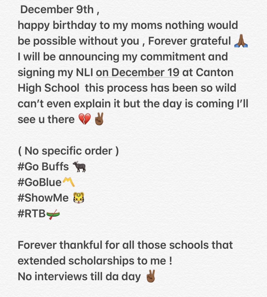 Robinson says he will take advantage of the early signing period and sign on Dec. 19. He is also considering Colorado, Michigan and Minnesota.