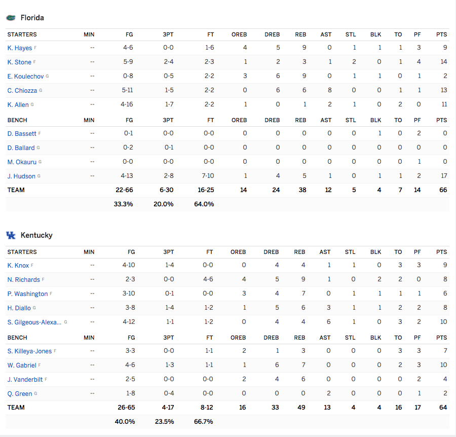 The Gators were aided by a late first-half run and an early second-half run, and Florida shot just 6-30 from three, good for just 20 percent.