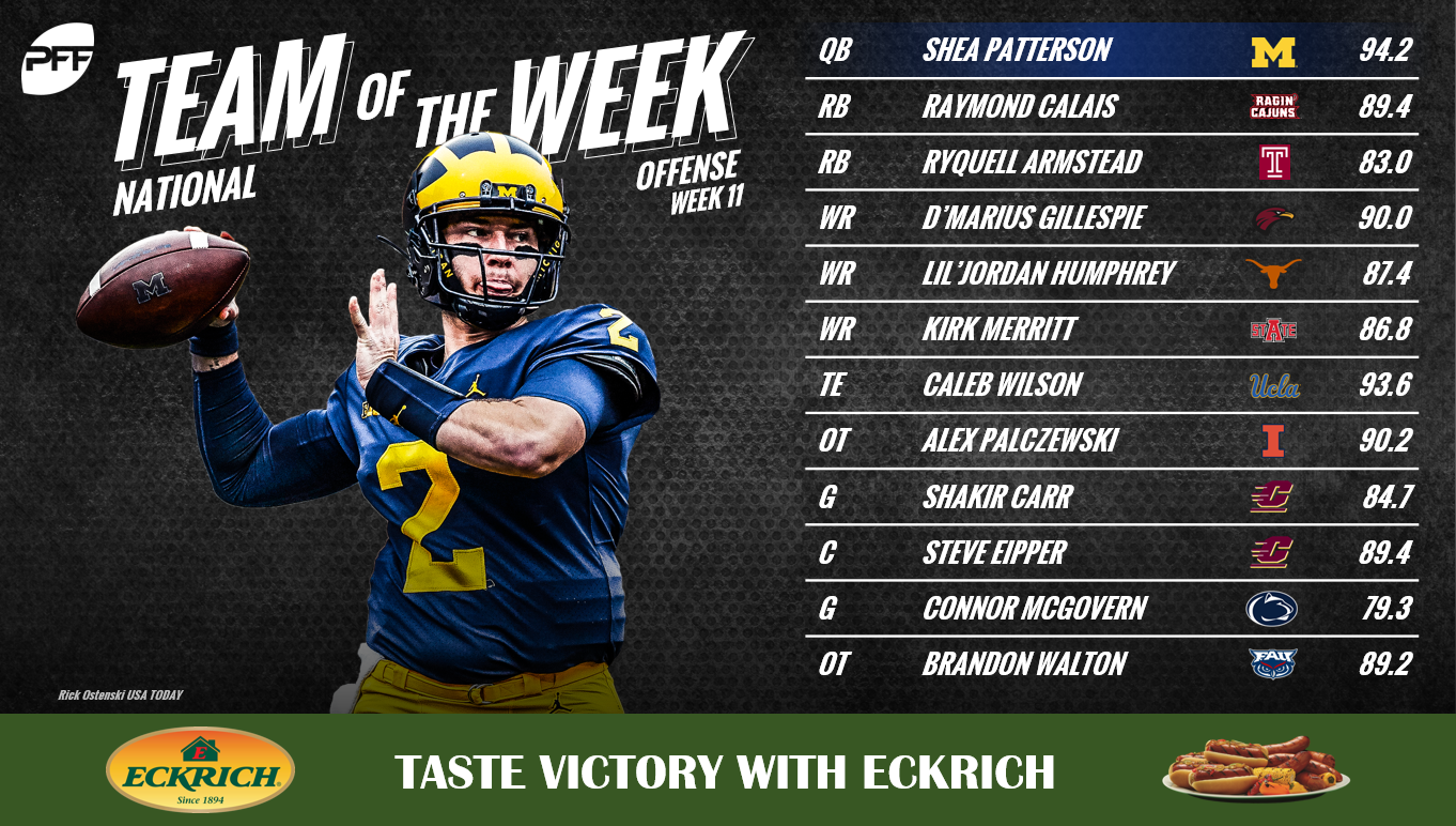 After watching all the film, Pro Football Focus has named its national college football “Team of the Week” with the highest-rated players at every position.