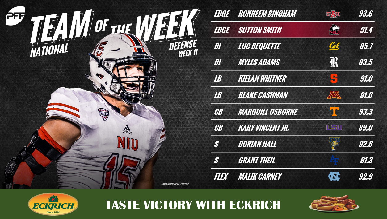 The Week 12 team features a pair of SEC defenders: Tennessee CB Marquill Osborne and LSU CB Kary Vincent Jr.