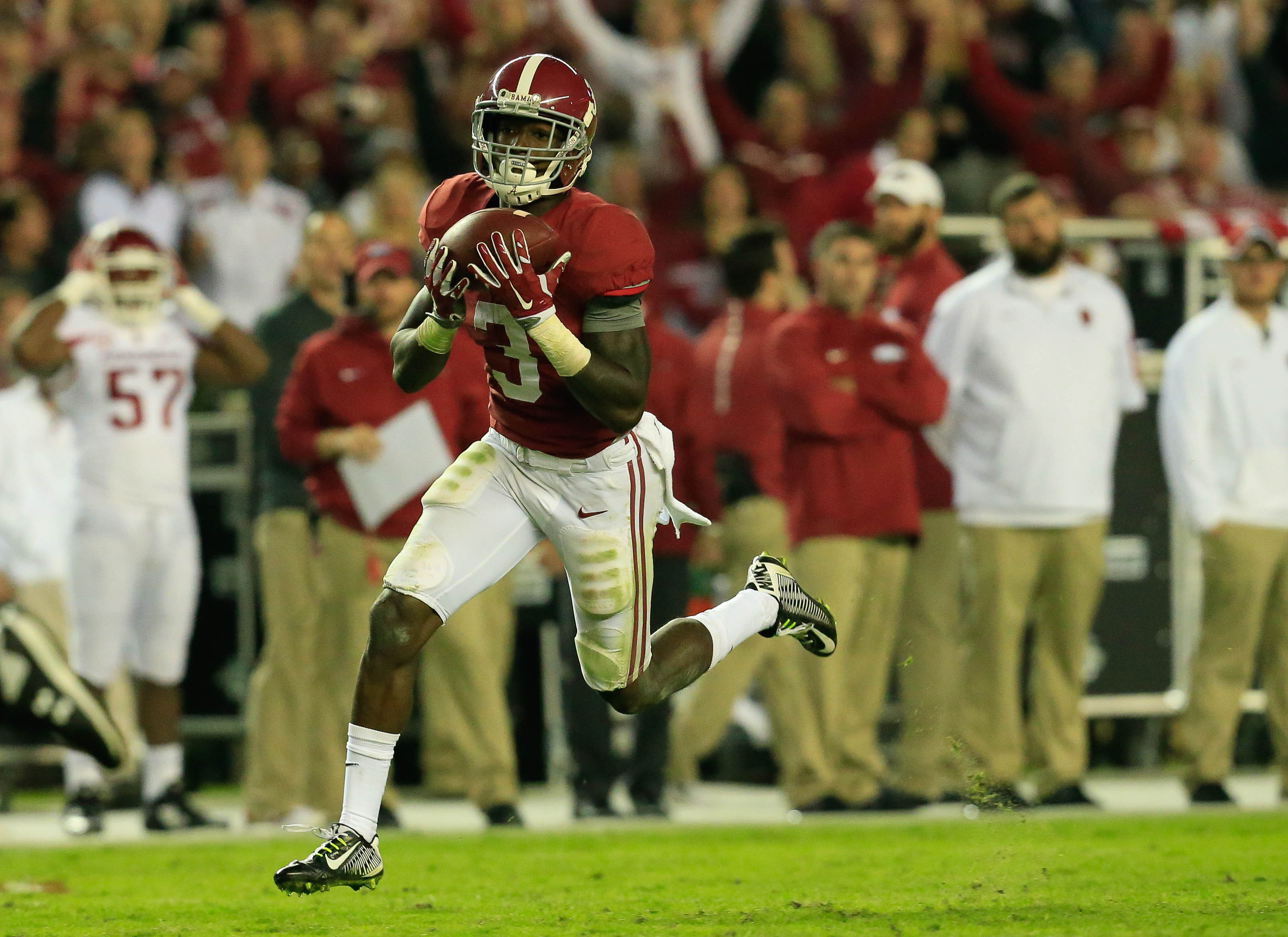 2. Calvin Ridley: The talented freshman receiver is quickly emerging as Alabama’s go-to option in the passing game. With nine catches for 140 yards against Arkansas, he has 260 receiving yards in his past two games, and it was his 81-yard reception Saturday that finally put the Tide in front late in the third quarter.