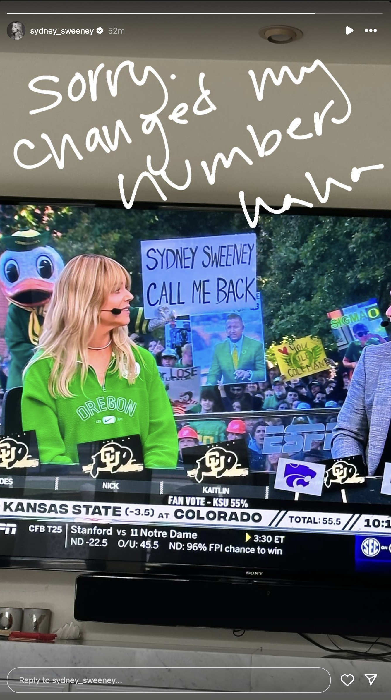 Sydney Sweeney responds to Oregon mascot’s College GameDay sign