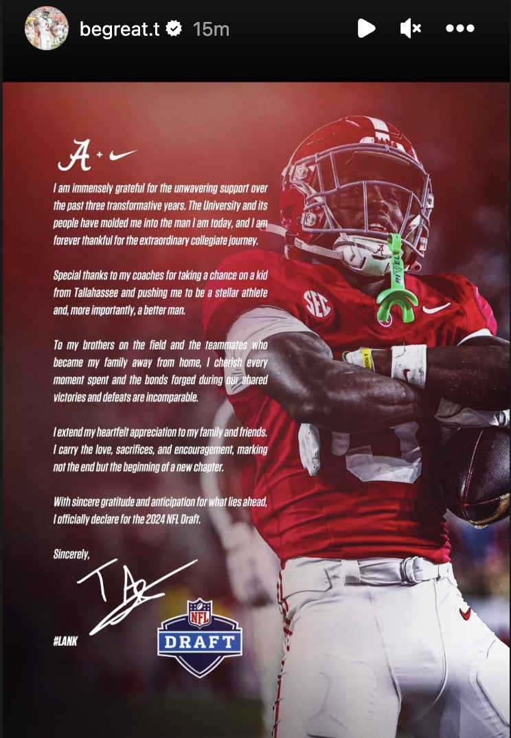 Now Arnold is moving on to the NFL. He shared the news on Instagram and wrote that he was “immensely grateful” for unwavering support at Alabama.