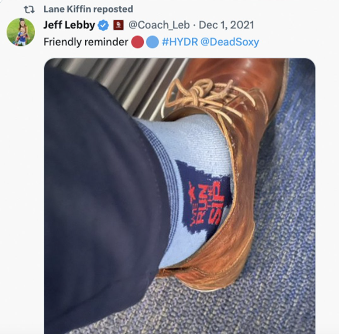 Jeff Lebby, a former Ole Miss offensive coordinator now at Oklahoma, has reportedly taken the head coaching position at Mississippi State, a natural target for Kiffin’s trolling. That’s when a repost of an old Lebby tweet came into play, as he shared in December, 2021 a picture of his dress socks, which read, “We run the Sip” a battle cry for the Rebels.